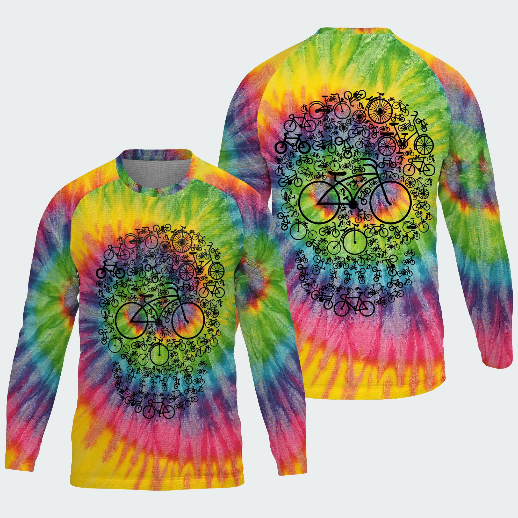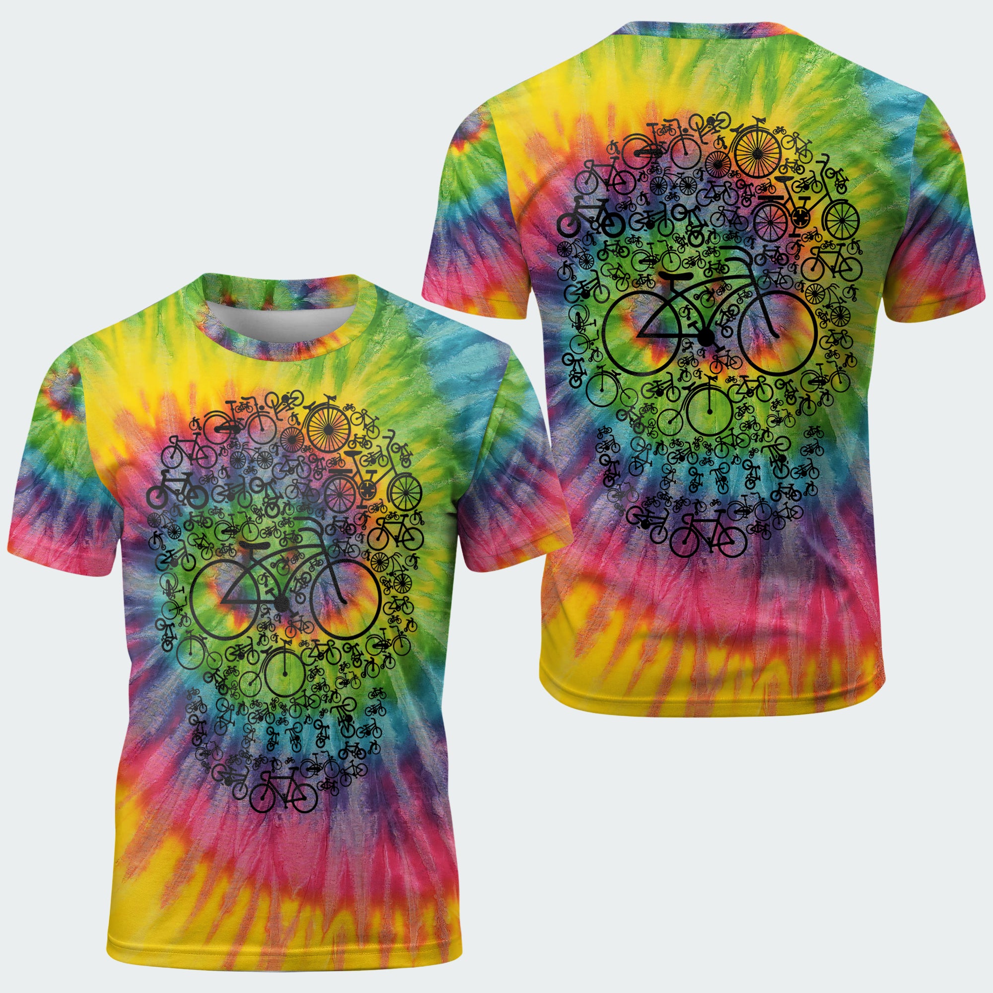 This trippy tie-dye tee blends free-spirited color with a skull made of gears and bikes — perfect for the rider who cruises on vibes and lives for the ride, not the rules.