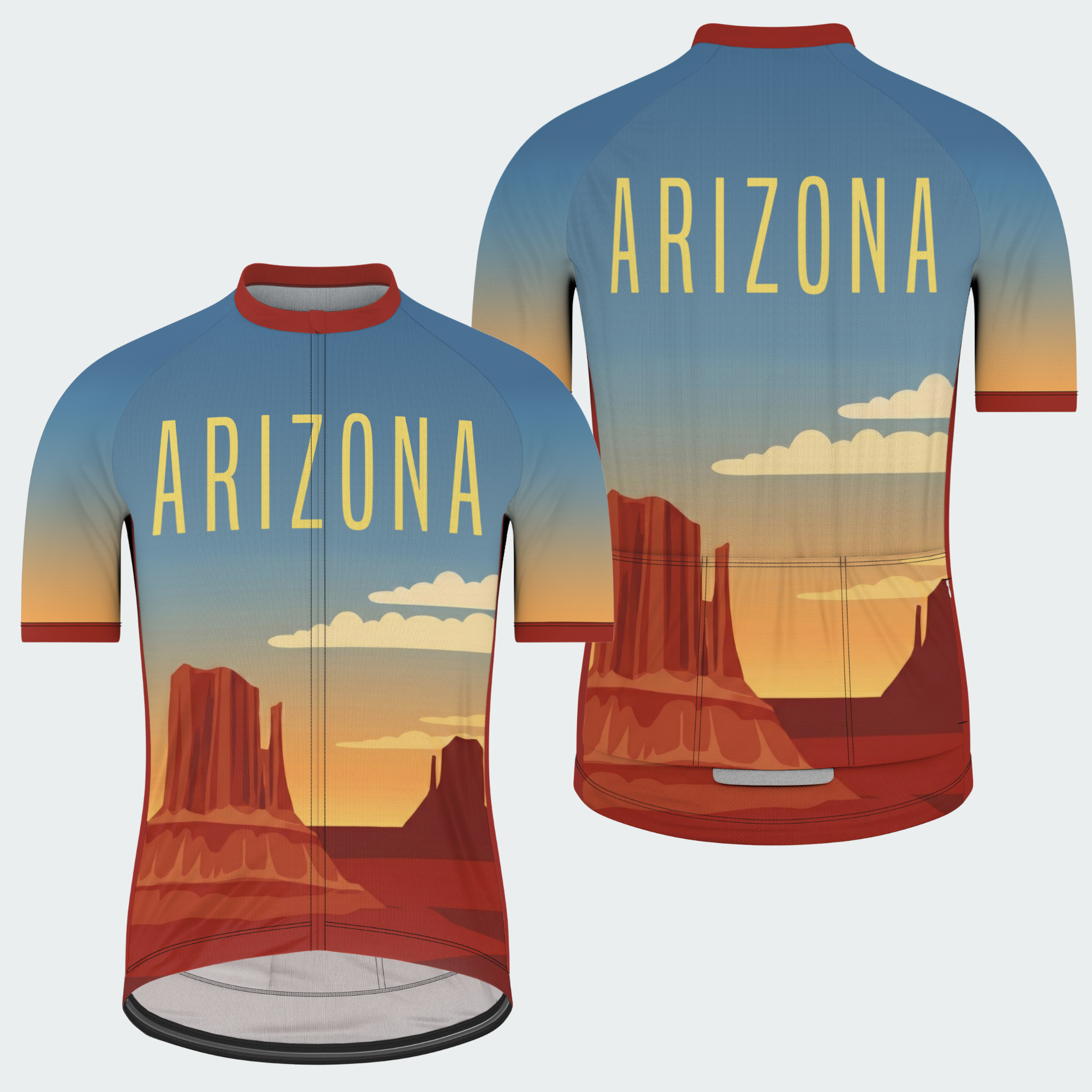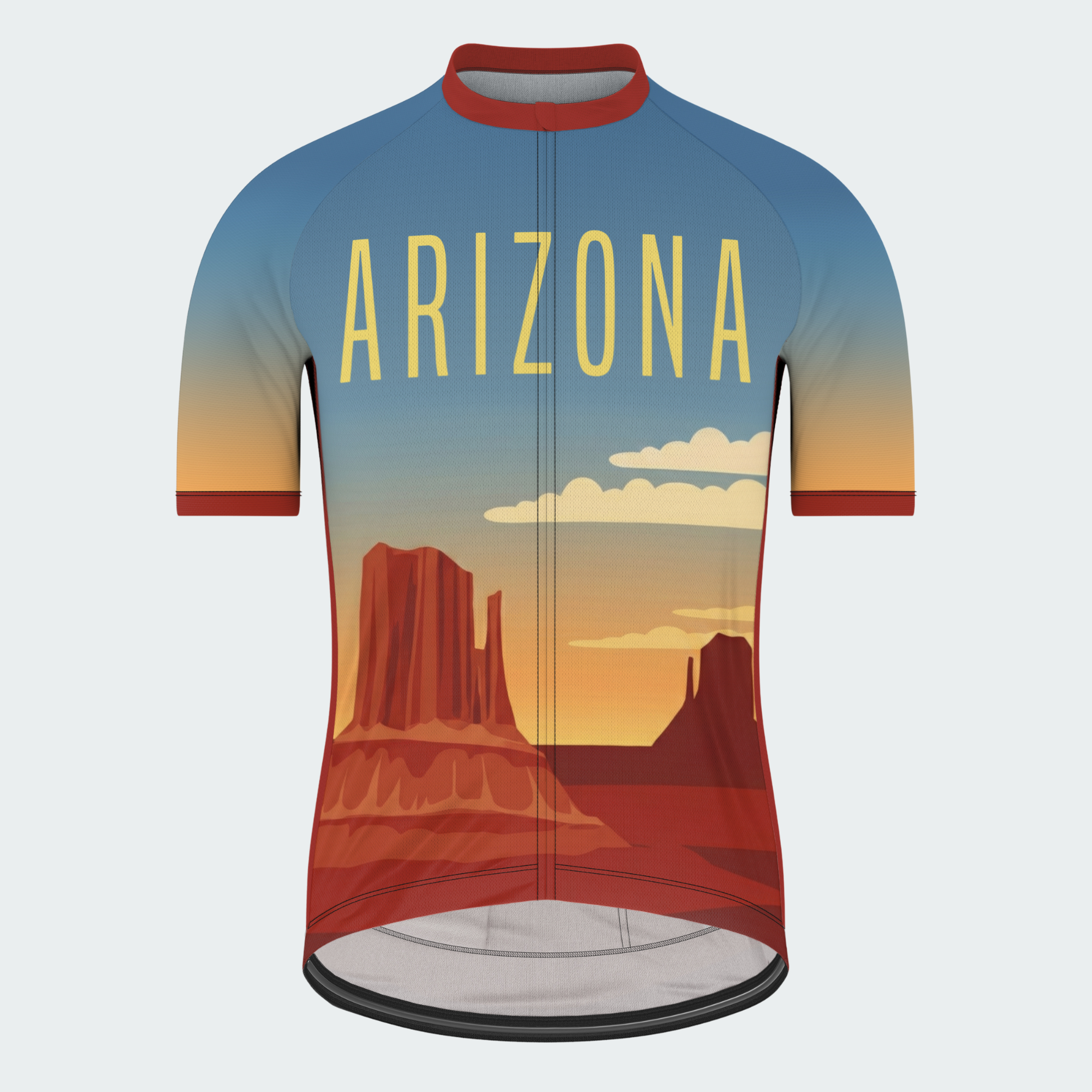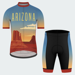 This retro-style Arizona kit channels the quiet power of the desert — wide skies, towering mesas, and warm sunset tones that feel timeless and steady. Clean typography and simplified landscapes give it a vintage travel-poster feel, made for riders who enjoy long roads, open space, and an unhurried rhythm. It’s not about speed — it’s about being there.