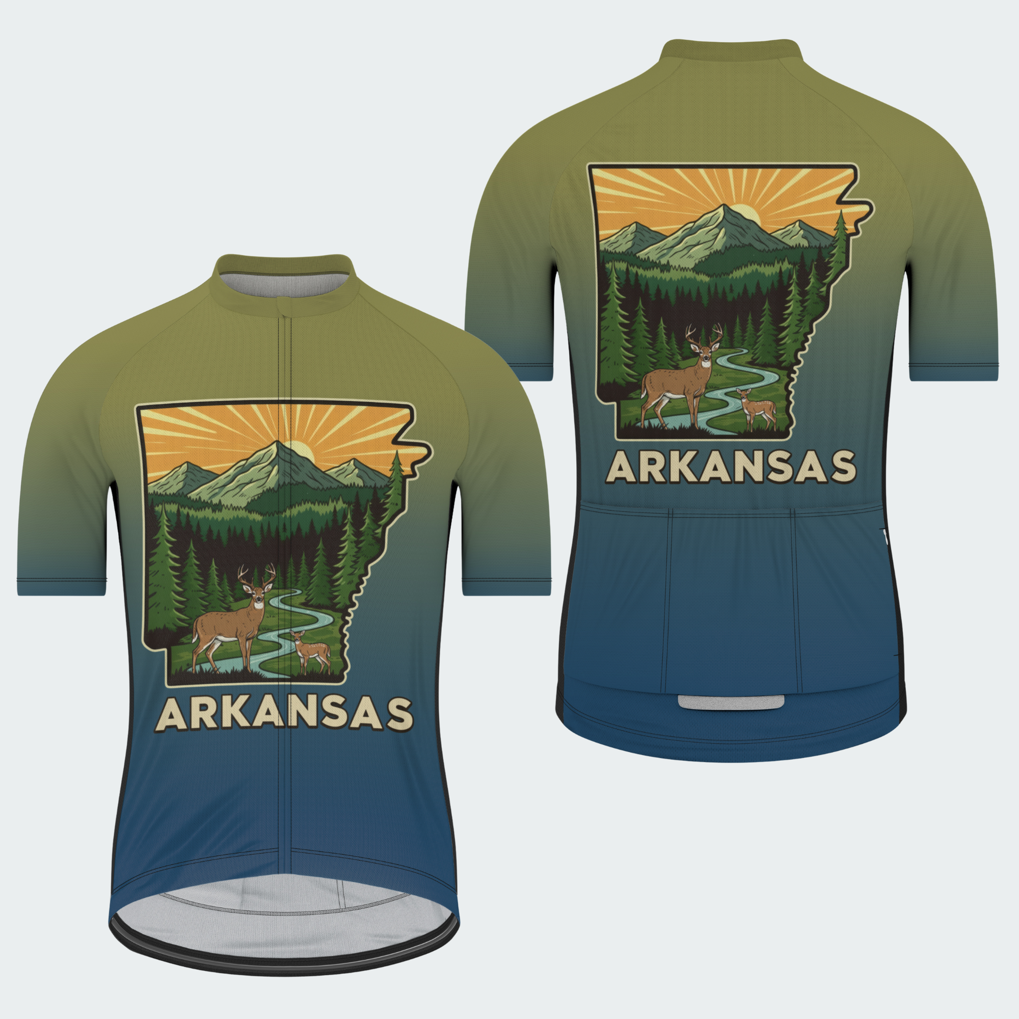 This kit is a tribute to Arkansas — not just the name on the map, but the land itself. The quiet forests, winding rivers, watchful deer, and mountains catching the first light of morning all come together in one story. It’s the feeling of riding roads that disappear into green, where time slows and the ride feels personal.
