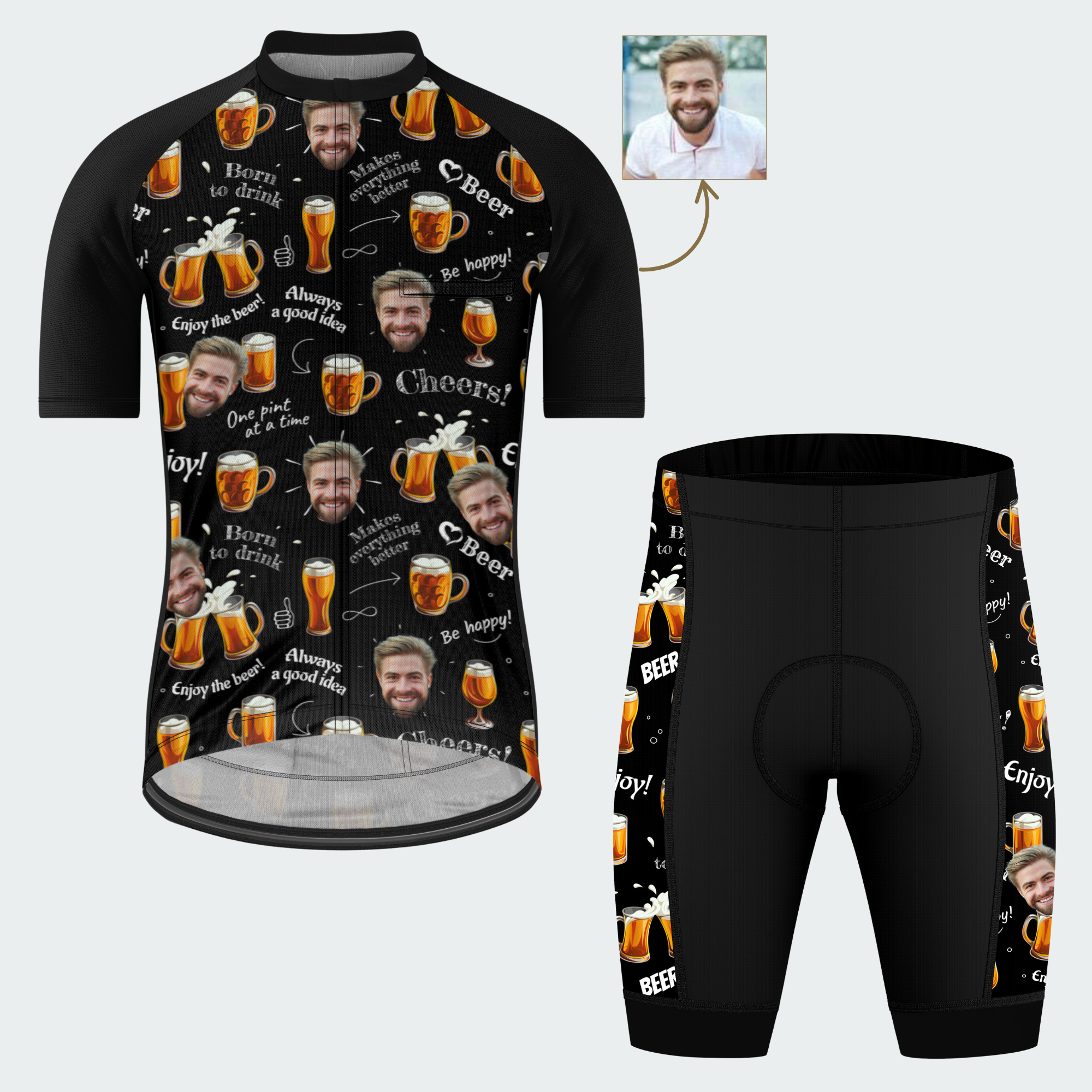 Personalize this cycling kit with your own face! Featuring beer mugs, fun quotes, and a lively design, it’s the perfect way to stand out on every ride.