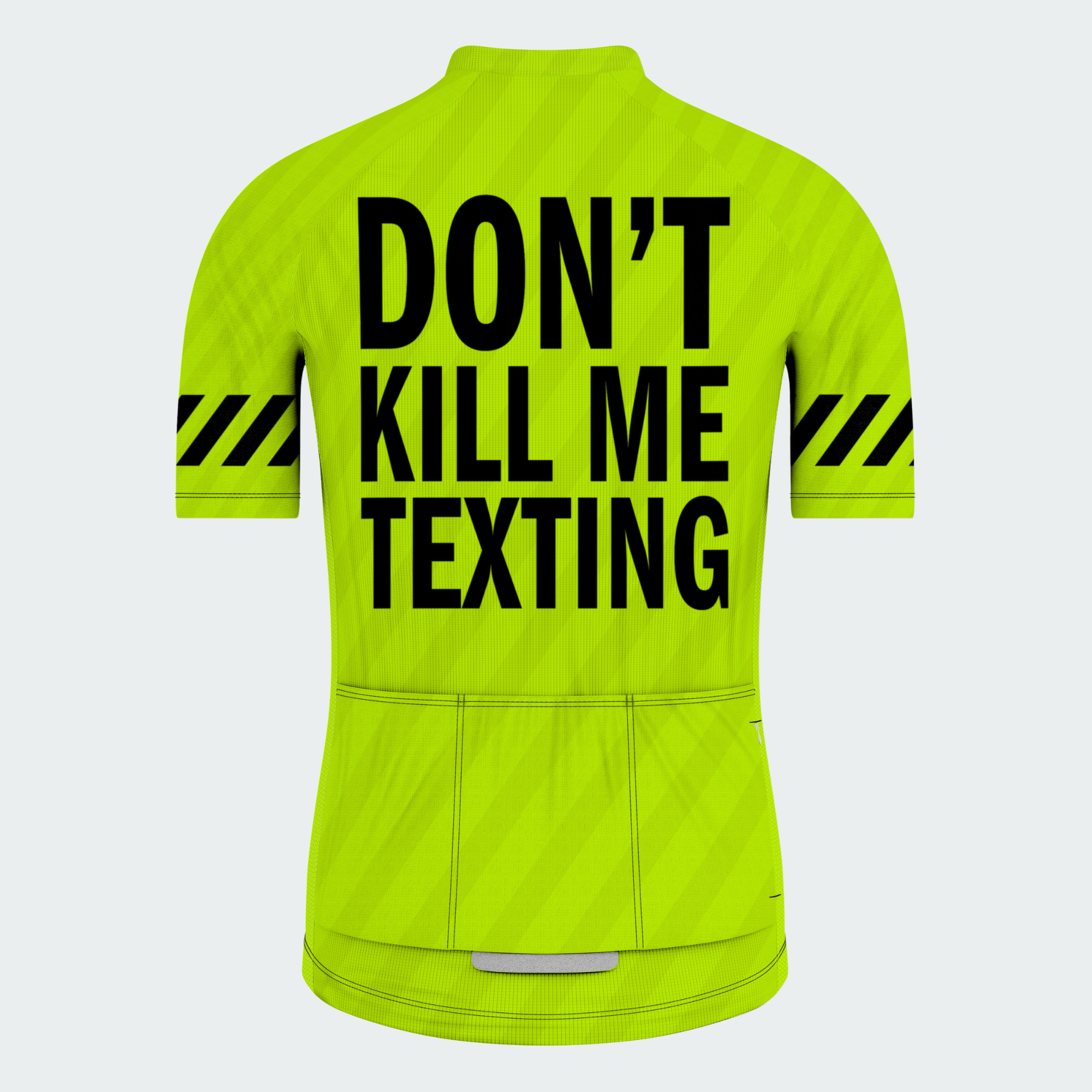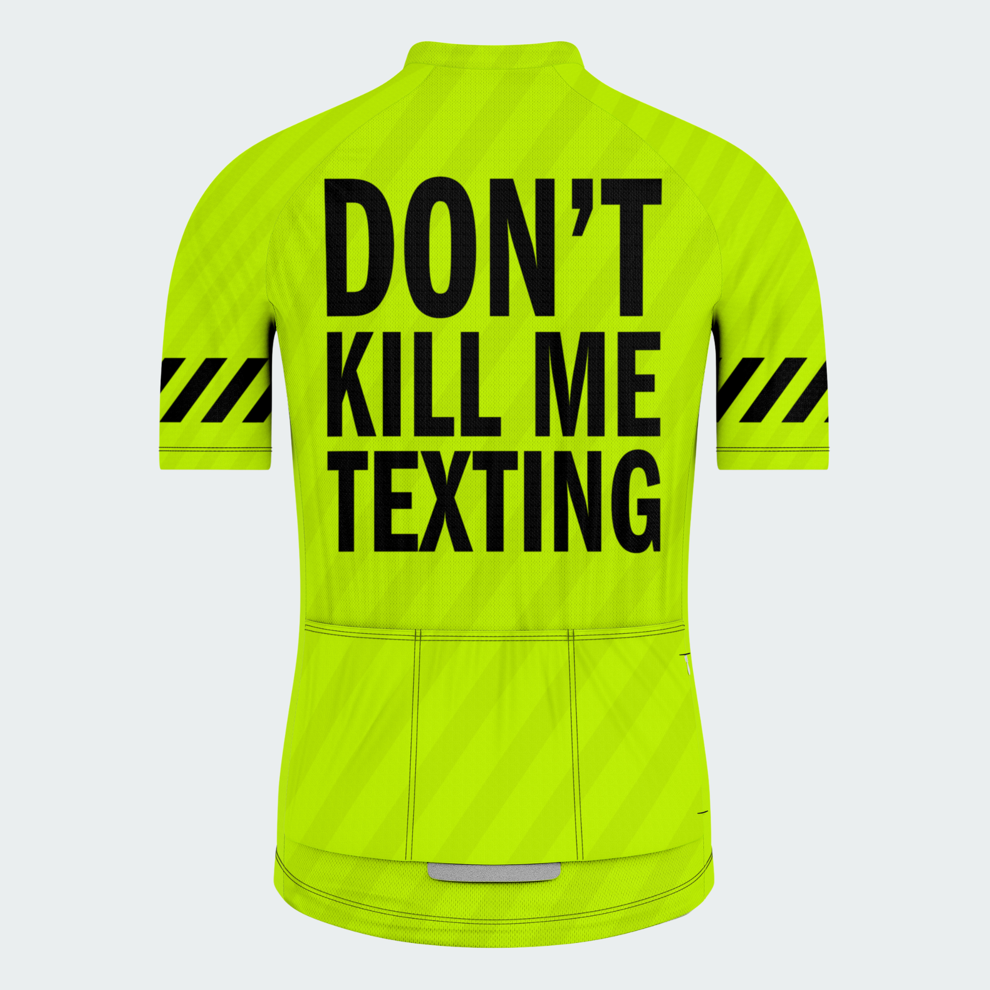 “DON’T KILL ME TEXTING” isn’t just a warning — it’s a plea, a line drawn in bold black letters on bright neon.