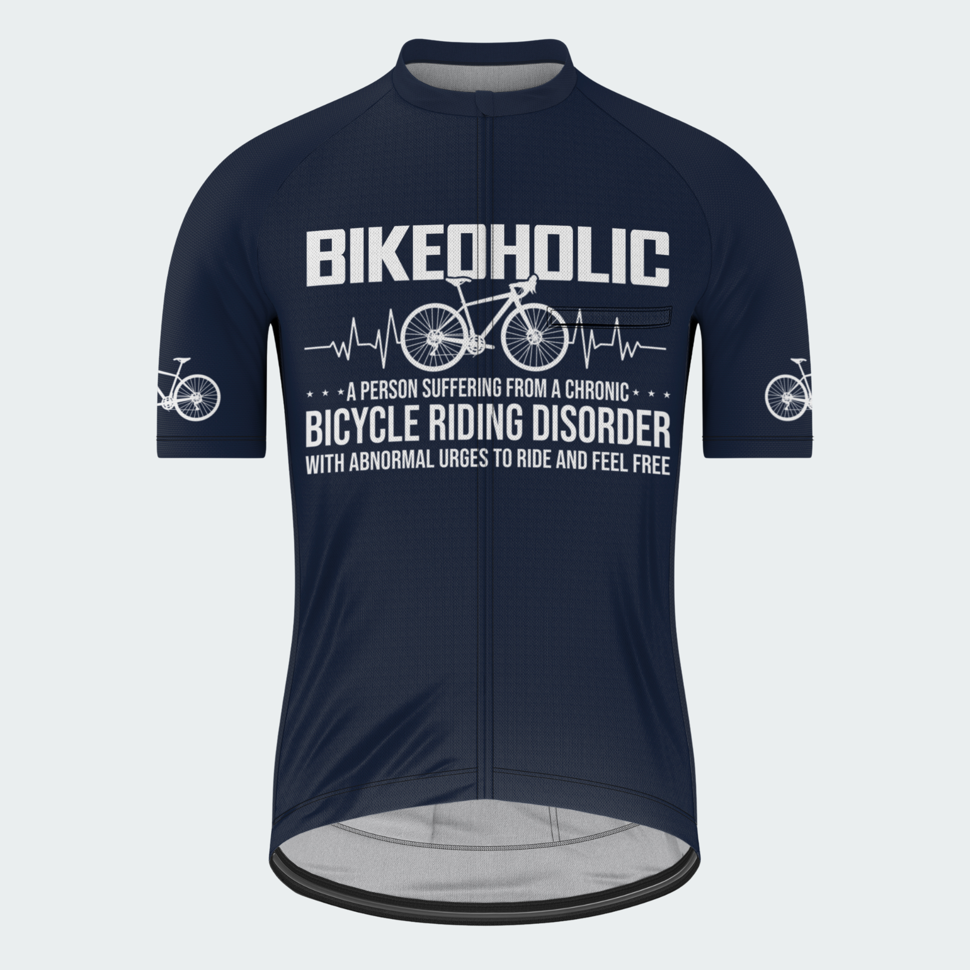 Diagnosed with Bicycle Riding Disorder? Join the club. This jersey is for the full-blown bike addicts — heartbeat lines, bold type, and an unapologetic need for speed.
