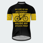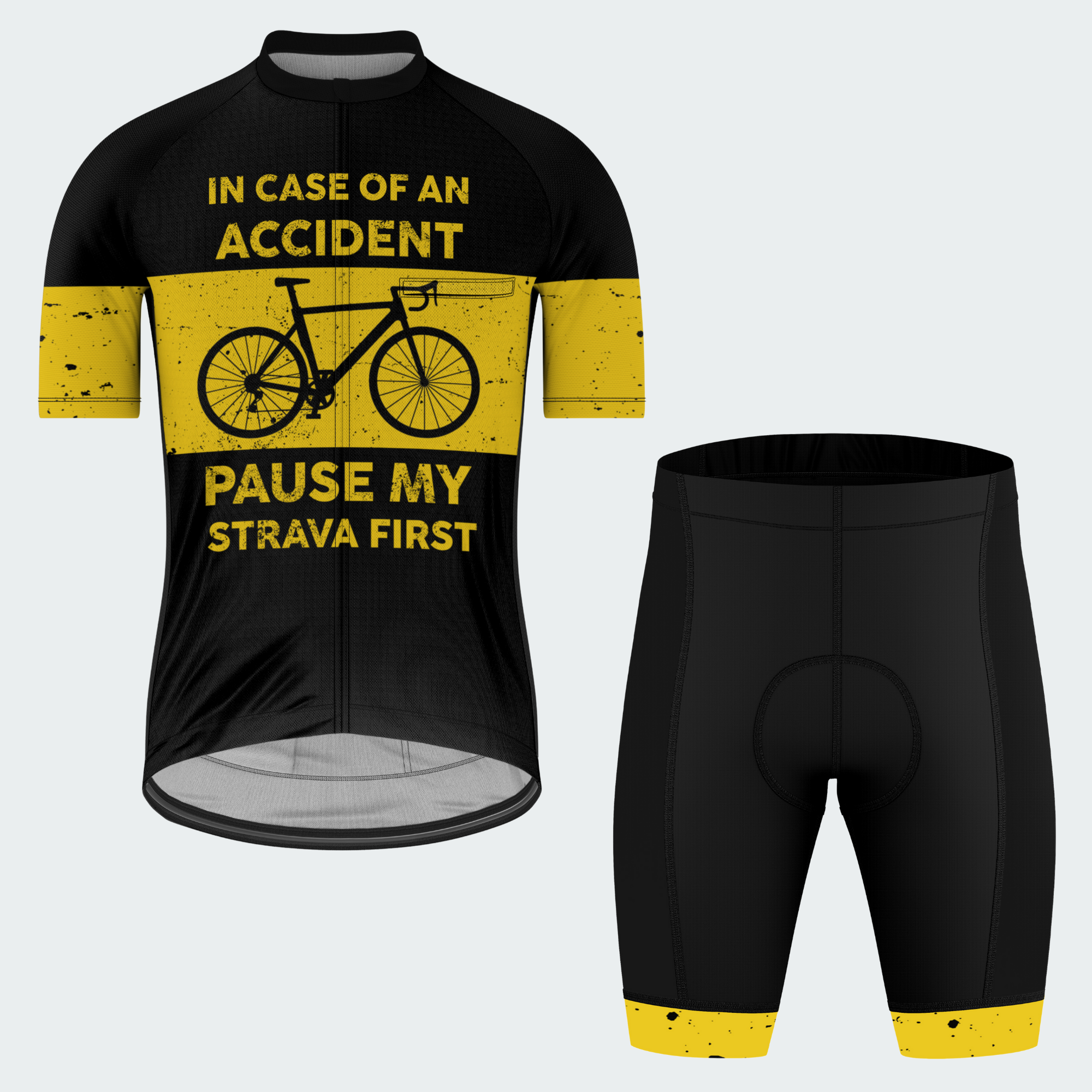 Stand out with this fun cycling kit featuring the ultimate cyclist’s priority: Strava first, everything else second.