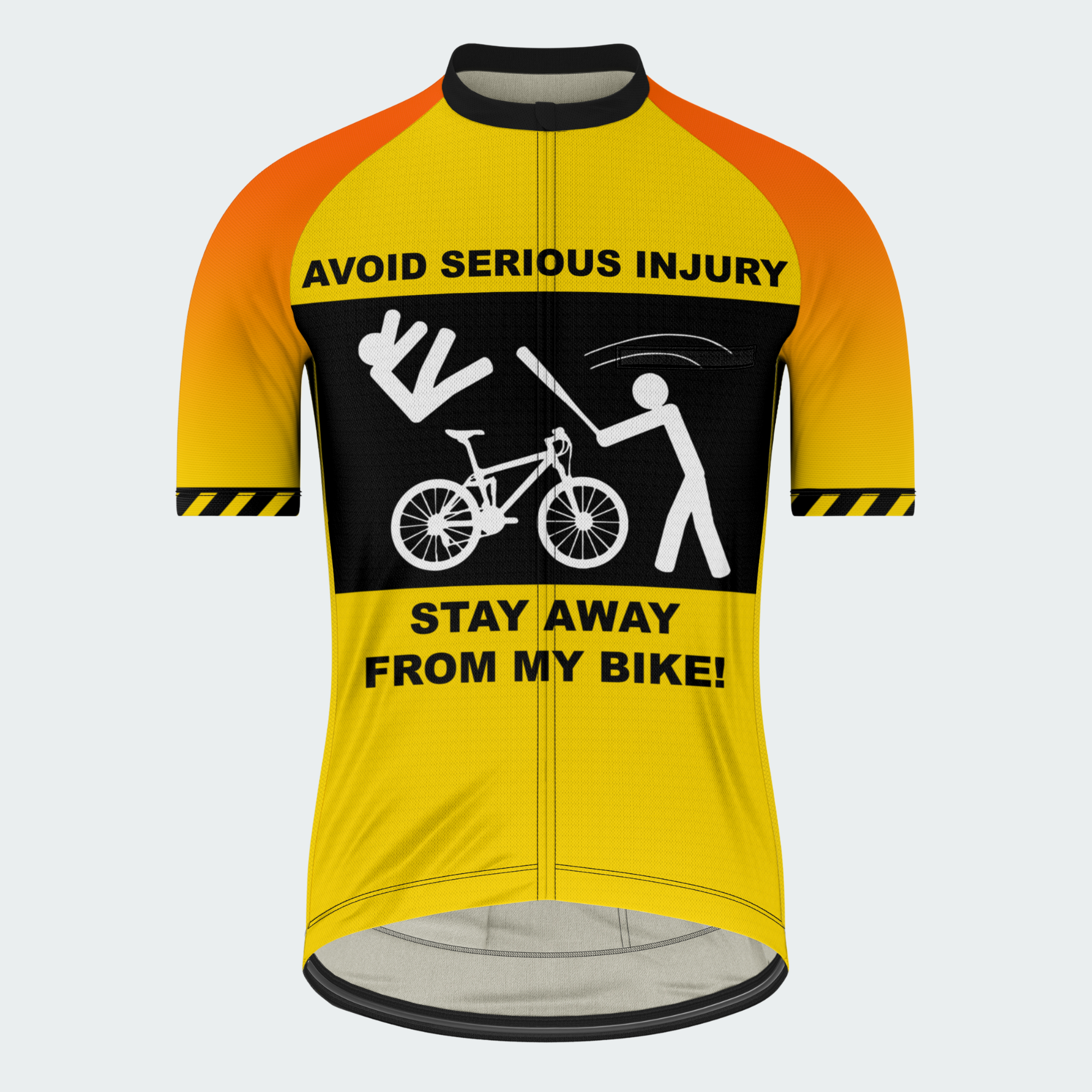 A fun yet strong cycling kit warning others to stay away from your bike. Ride safe and make a bold statement!