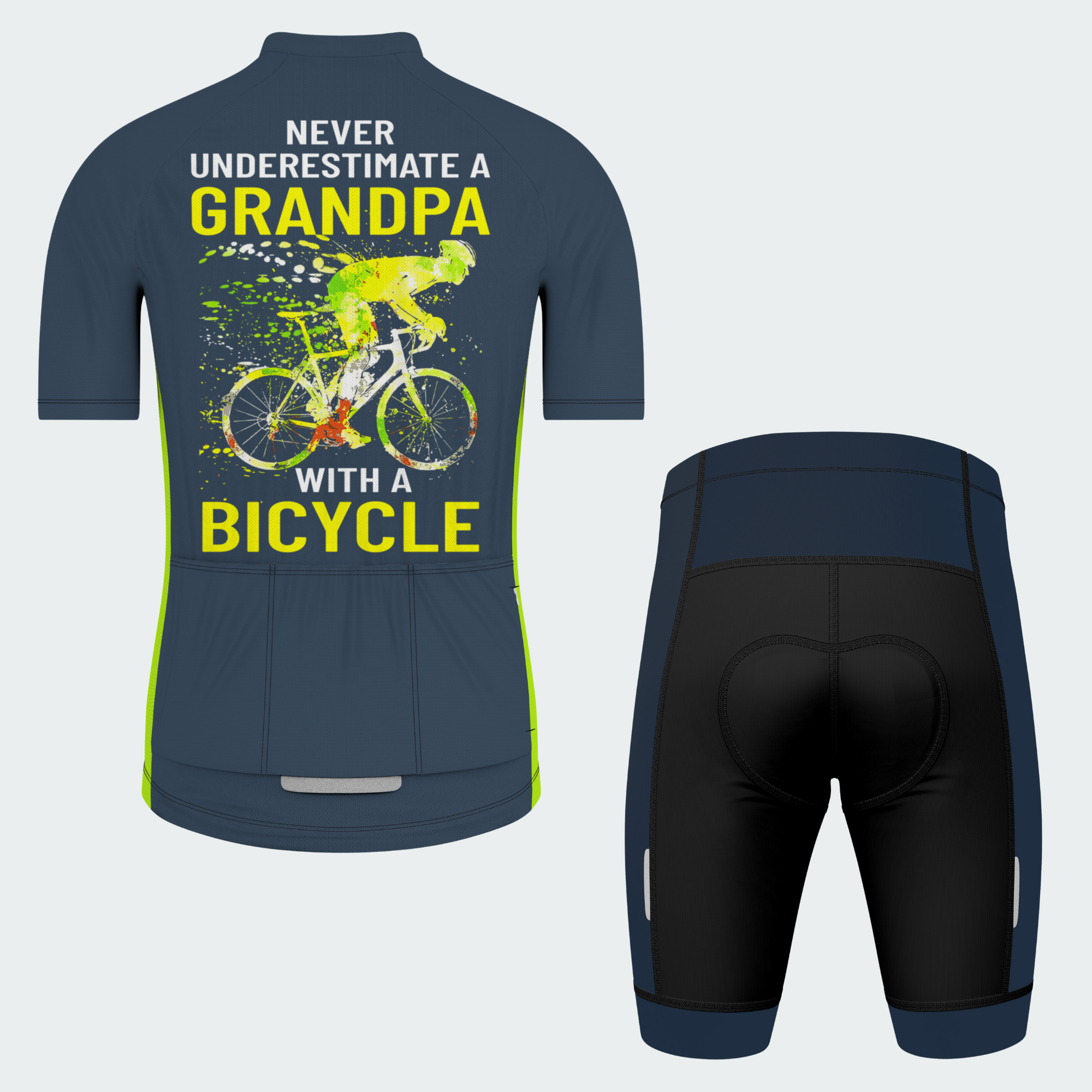 This kit is for the legendary grandpas who don’t sit still — they spin, they sprint, and they leave younger riders wondering what just happened.