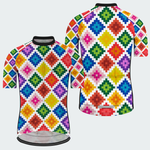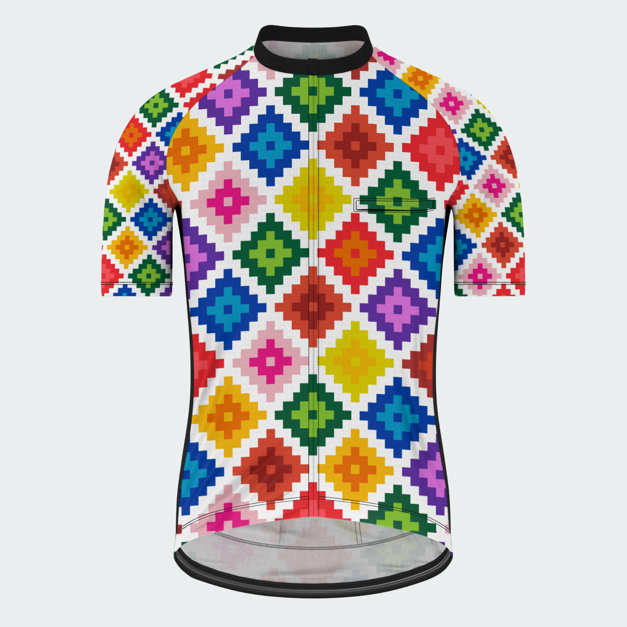 This kit explodes with bold diamond patterns in vibrant hues — like stained glass in motion. For cyclists who ride to express themselves and aren’t afraid to light up the road.