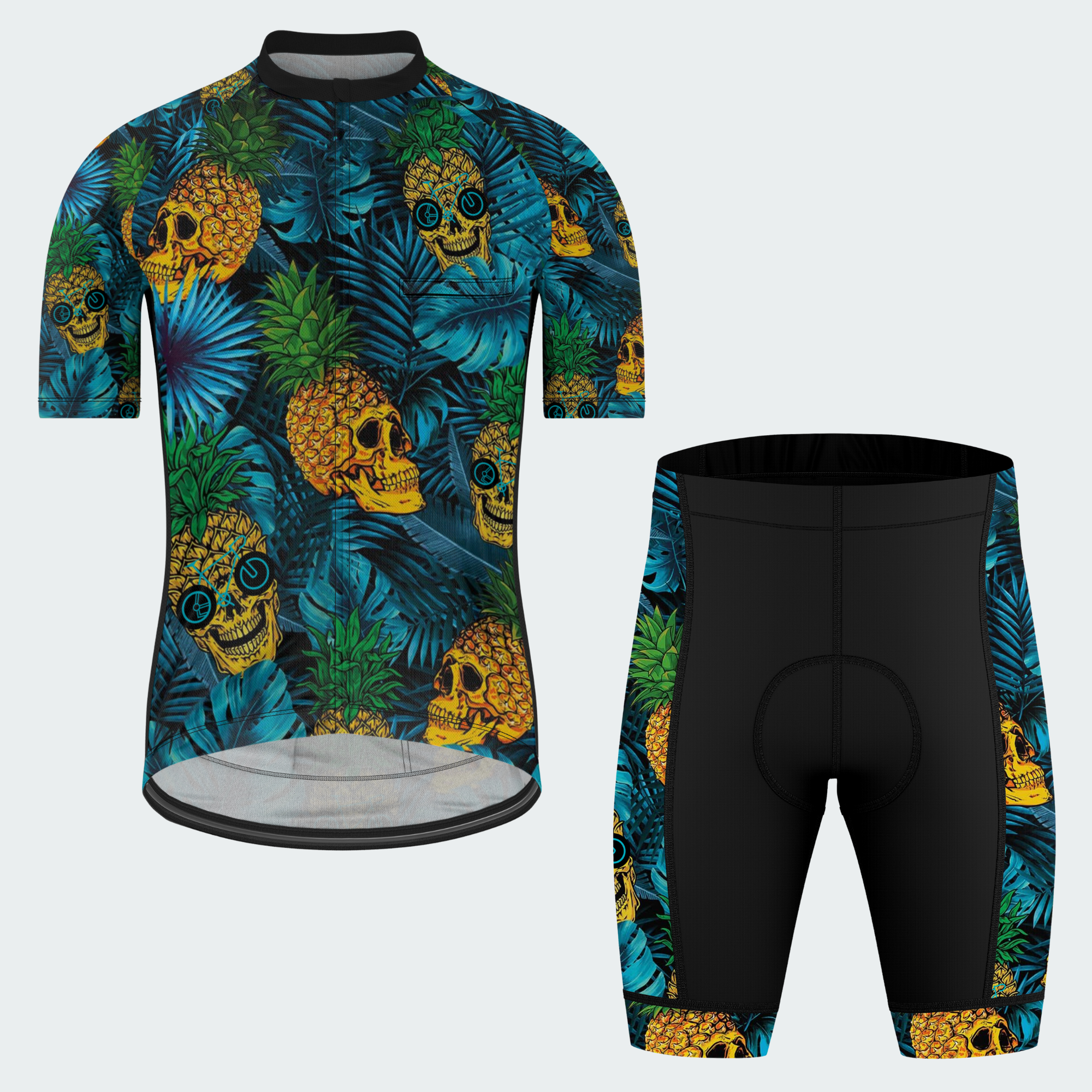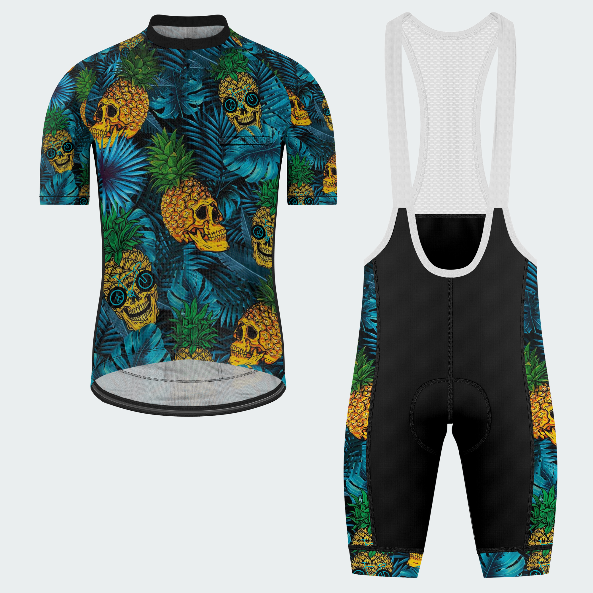 Who said paradise can’t be a little edgy? This cycling kit blends tropical vibes with cool skulls—because your ride should be as wild as your spirit!